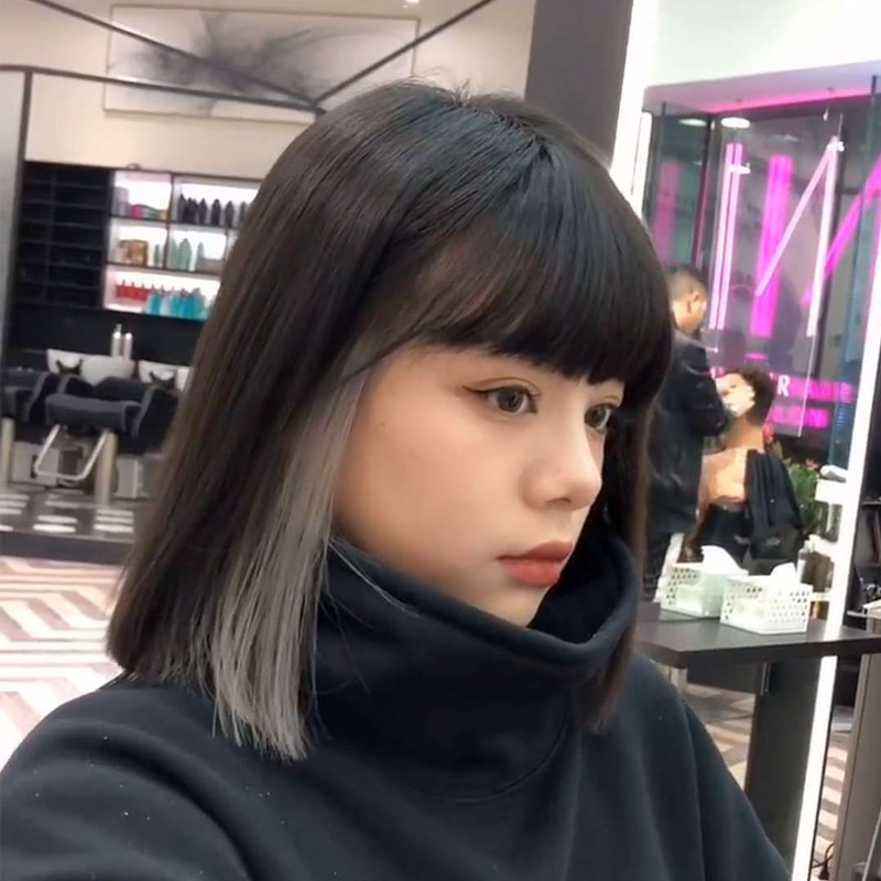 Hanging Ear Dyed Wig Female Short Straight Hair Korean Women Black Gray Gradient Color Short Hair Air Bangs Shopee Malaysia